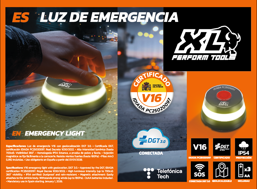 Baliza de emergencia y señalización de accidentes con sistema de geolocalización y servicio de conectividad con Telefónica Tech, conectada a la DGT 3.0 y certificación V16 homologada - De Uso Obligatorio en España 01/2026 - Servicio de conectividad con tarjeta NB-Iot Sim de TELEFONICA - Funciona con Internet NB-Iot y sistema de geolocalización (GPS) Homologación IDIADA PC25020097